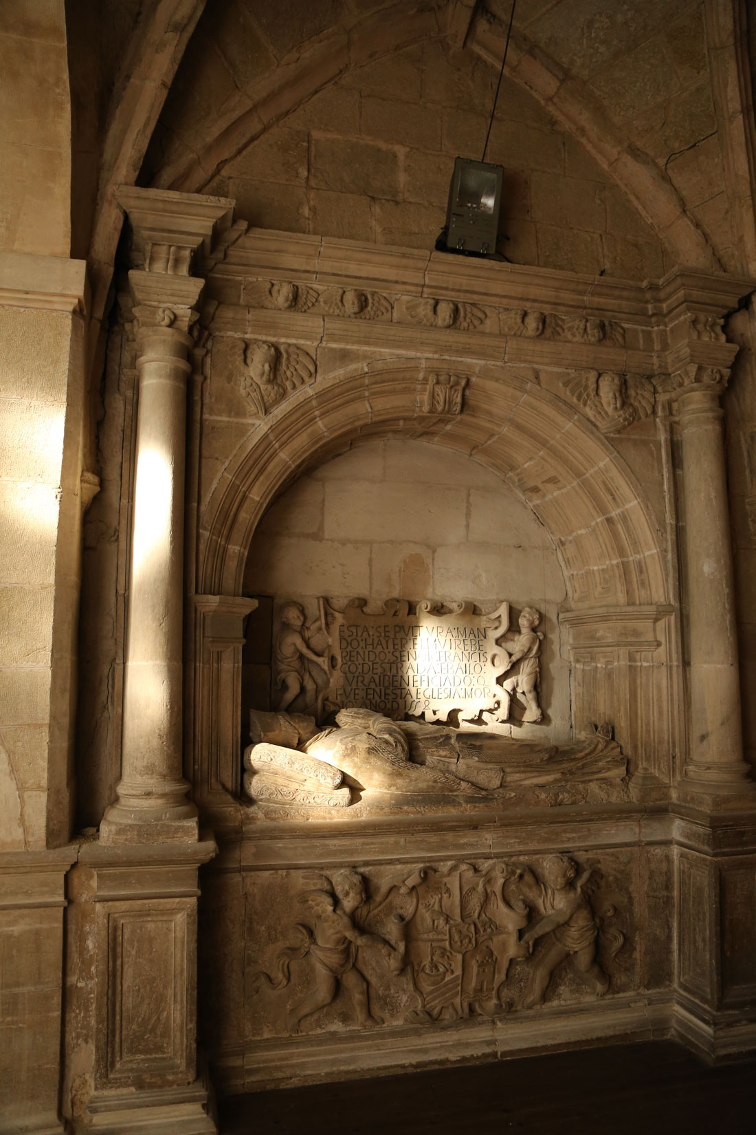 En la capilla del lado de la epístola se encuentra el sepulcro de estilo renacentista de D. Francisco de Estrada y Bailón, que como indica la inscripción fue cura de esta iglesia que murió en 1558, al que se dedicó la capilla. El sepulcro se encuadra en un arco de triunfo enmarcado por dos columnas que soportan un entablamento. El friso que decora la cama presenta dos angelotes que sostienen una cartela con el escudo de armas del finado. Este friso es muy similar al que aparece en el zócalo del Retablo Mayor de la Iglesia de Santa María de Portugalete, obra de Juan de Beaugrant y Juan de Ayala de hacia 1549 y que trabajaron por esas fechas en el retablo de la Catedral de Santo Domingo de la Calzada.
